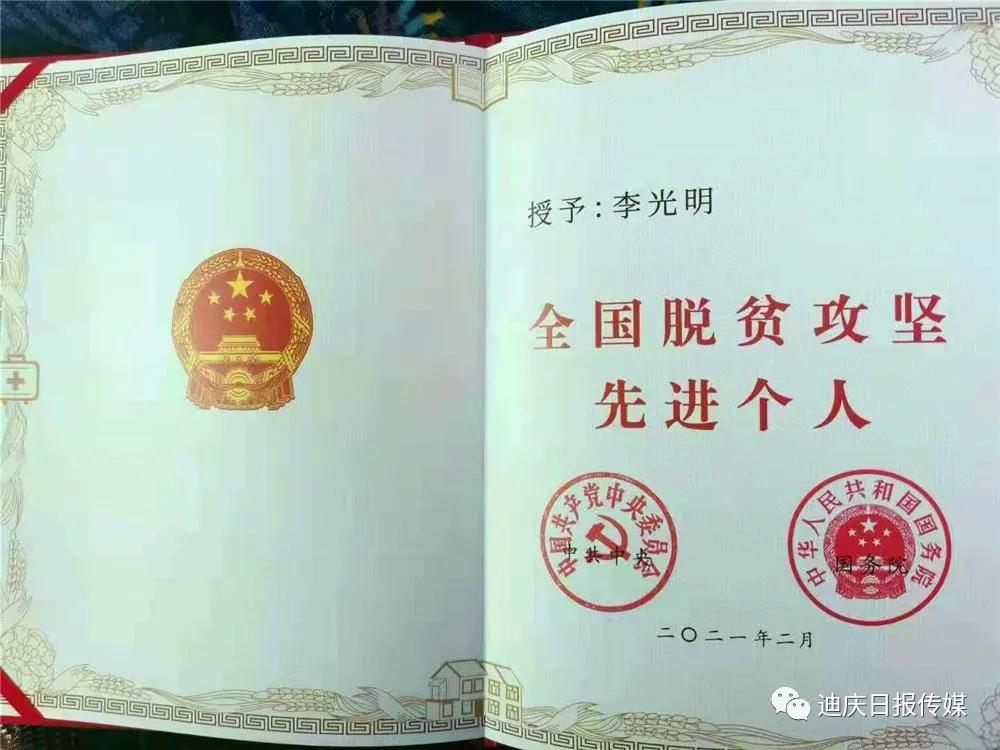 2020年5月,当知悉维西县退出贫困县序列时,李光明第一时间在日记里写下了这样一句话:这一消息无悔于自己1000多个日日夜夜的辛苦付出,无悔于自己的两鬓斑白。的确,在这5年时间里,面对贫困群众“弱在钱袋子上”的问题,他带领大家因地制宜推进产业布局,全面打造餐桌、生态、庄园、健康、甜蜜、休闲6个品牌,产业收入占群众收入的30%以上;面对贫困群众“难在住房上”的问题,他积极争取项目,下大力气实施危房改造、农房抗震改造、易地搬迁等项目,做到了“危房不住人,住人无危房”;面对贫困群众“痛在医疗上”的问题,他要求各村严格落实健康扶贫30条措施和基本医保、大病保险、民政救助、兜底保障“四重保障”措施,建档立卡家庭签约服务100%全覆盖,建档立卡贫困人口参保率达100%,住院报销比例达90%以上;面对贫困群众“输在就学上”的问题,他连续5年组织开展“金秋圆梦”助学活动及“控辍保学”“两后生”继续教育工作,有效斩断贫困代际相传;面对贫困群众“穷在饮水上”的问题,他多方争取,大力实施安饮工程和水质提升工程,全镇家家户户通水,取水半径、水质水量均已达标;面对贫困群众“困在交通上”的问题,他以通组入户路“能通全通”为目标,不断夯实贫困地区发展基础。如今,全镇通组路硬化率达98%,入户路硬化率达90%以上,实现了贫困农村路通、人富、乡村美的历史性跨越。