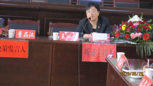 会议由县人民政府法制办主任赵莲花同志主持,县委常委政法委书记、县政府常务副县长董品汉同志,县人民法院院长余中生同志,县人民法院执行局局长李文同志,县人民法院副院长李学全同志,县民政局局长王从武同志作为决策发言人参加了会议。会议邀请来自县人大、县政协、政法委、县人民法院、县人民检察院、县公安局、县司法局、永春乡、保和镇、县委政策研究室、县发展研究中心、律师代表及退休干部(共24人,实到23人)作为听证代表参加了会议。