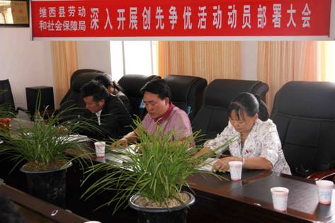 根据县委深入开展创先争优活动领导小组办公室的统一安排部署,维西县劳动和社会保障局于2010年6月2日上午在局务会议室召开深入开展创先争优活动启动部署会议,维西县人民政府副县长余金全同志,第一纪工委王爱琴同志参加出席了启动大会,会议由劳动和社会保障局副局长和承君同志主持,劳动和社会保障局全体干部职工参加了会议。