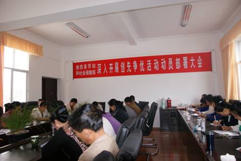 首先,劳动和社会保障局党支部书记、局长罗向东同志作动员讲话,罗局长指出,深入开展创先争优活动,认真贯彻落实党的十七大、十七届三中、四中全会精神,以邓小平理论和“三个代表”重要思想为指导,深入学习实践科学发展观,以“打造就业新亮点,完善社会保障新体系,树立部门新形象,劳动保障工作新跨越”为主题,以“创建基层党组织,争当优秀共产党员”为载体,动员和号召全局干部职工要紧紧围绕活动主题,以改革创新的精神,求真务实的工作作风,推动劳动保障事业跨越发展。其次,局办公室主任宣读了《关于在全县基层党组织和党员中深入开展创先争优活动实施意见》和《维西县劳动和社会保障局深入开展创先争优活动实施方案》。进一步明确了活动的总体要求,主要内容,方法步骤。三是县人民政府副县长余金全同志作重要讲话,余副县长指出,要正确认识开展创先争优活动的重要意义。开展创先争优活动是进一步巩固和扩大学习实践科学发展观活动的需要,是学习实践科学发展观活动的延伸,是推动基层党组织和党员立足本职发展先进模范的经常性工作,大家一定要深刻领会,扎实开展好各项工作。各位干部职工要充分发挥个体在集体中的作用,全面做好劳动保障工作,同时,领导班子要有识大体,顾大局的意识,要关心职工,要加强同职工之间的联系,促进团结。四是第一纪工委领导王爱琴提出三点要求:一是充分认识活动的重要意义,与本职工作有机结合,努力做到两不误,两促进。二是把握活动内容,做到“五好”、“五带头”。三是加强领导,务求实效。