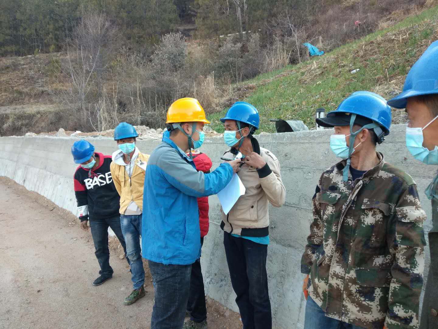 (一)确保防疫物资到位。要求各参建单位均配备体温枪、温度计、防护口罩、消毒液、洗涤用品等防疫物资。保证施工人员每天每人一个口罩;对每一个人员进行早晚各一次的体温测量并登记;工地食堂、宿舍、办公场所等人员密集地方做到每天消毒;工地卫生间均配备洗手液、擦手纸等卫生用品。