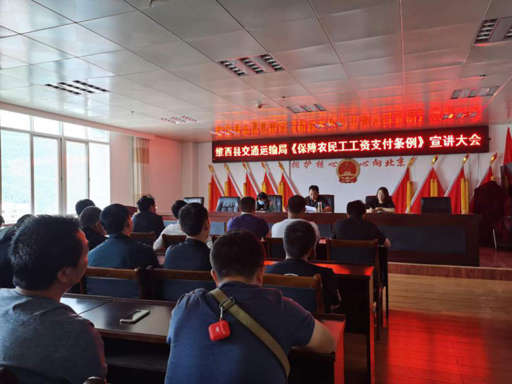 7月14日,维西县交通运输局组织在建工程施工单位负责人召开《保障农民工工资支付条例》宣讲大会,由维西县交通运输局有关负责人就《保障农民工工资支付条例》进行政策宣讲解读,要求各施工单位必须严格落实“一金六制”,做好农民工实名制管理、工资委托代付、分包单位资质审查、人员进出场安全教育等相关工作,防止用工风险。
