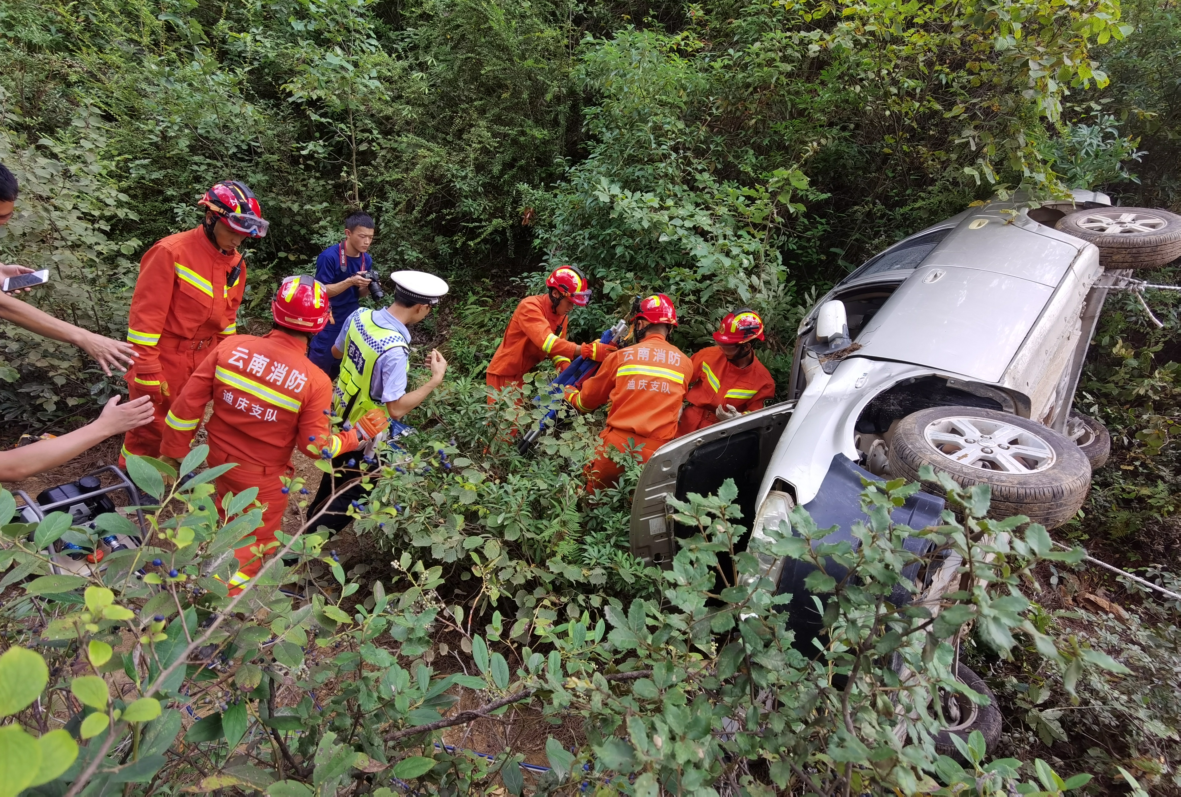 此次演练模拟在维西县城环城路发生小型轿车侧翻至道路下侧,造成驾驶员被困车中、两名乘车人受伤、车辆受损的警情。