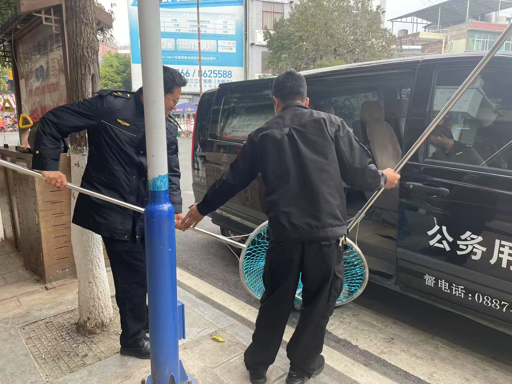 针对群众反映强烈的流浪狗问题,执法人员坚持问题导向,加大搜寻力度,秉承着人道、规范、安全、有效的原则,配备捕狗网等专业捕狗工具,以“日常巡查+集中整治”相结合的方式,采取“定时+不定时”巡查策略,重点排查居民群众投诉举报频繁地区,摸清流浪狗主要活动时间、活动区域和生活习性,进行逐一捕捉后,集中送至流浪狗收容中心进行妥善安置,避免流浪狗对市民安全和环境卫生造成影响。
