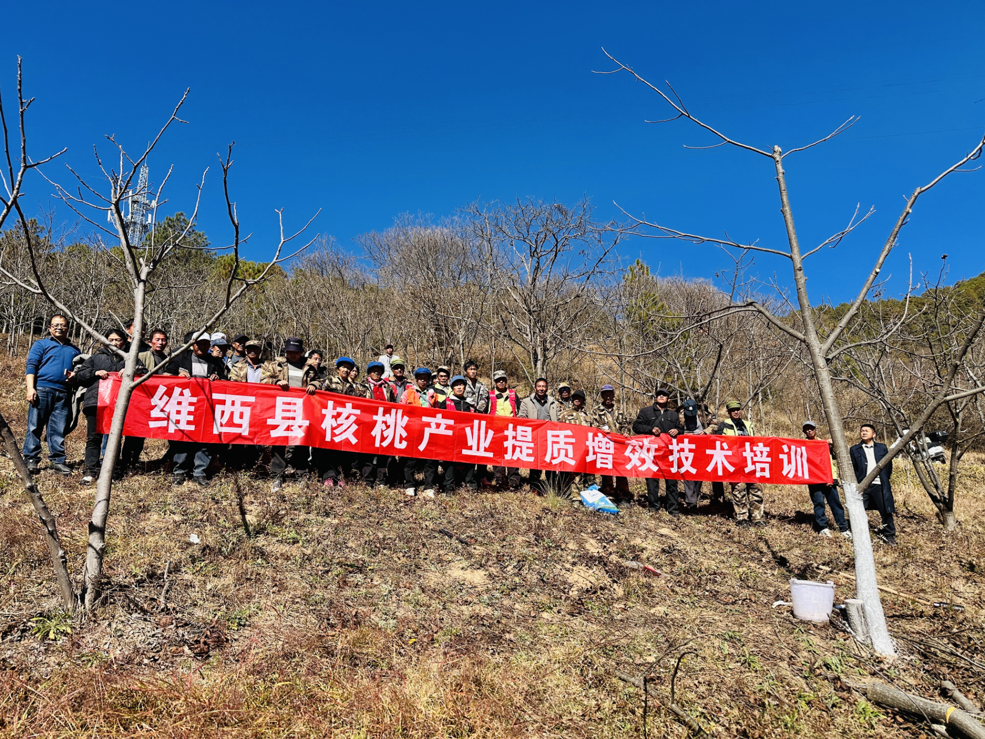 培训以习近平生态文明思想为指导,紧密结合维西高海拔山地核桃种植实际,秉持本地适配、实用导向、生态协同的原则,围绕冬季管护关键环节,重点讲授核桃整形修剪、冬季栽培管理、有害生物绿色防控、工具使用与安全规范等四大核心内容。为确保培训实效,县林草局提前通过多种渠道宣传动员,备齐培训教材与实操工具,并采取“理论授课+现场实训+互动答疑”相结合的模式开展教学——上午集中讲解技术原理与本地应用要点,下午深入核桃种植示范地,进行“手把手”实操指导,力求学员即学即用、掌握扎实。