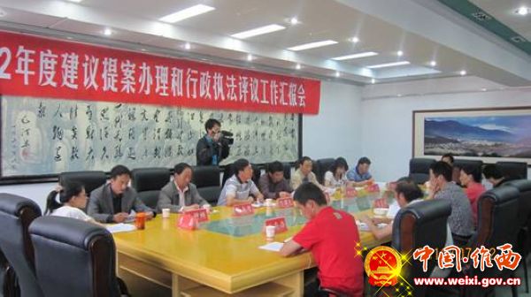 会上,分管政府法制工作的州政府调研员刘秀萍同志就我县办理州政协提案和行政执法评议工作开展情况向督查组作了汇报:今年,县政府承办的3件政协提案已面商完毕,委员对办理结果均表示满意;我县自与州人民政府签订《行政执法评议量化考核责任书》以来,就严格按照考核标准,切实做好行政执法评议工作:一是建立行政执法责任制公示制度,全面推进行政执法责任制;二是全县执法依据梳理工作全面完成;三是严把执法主体资格关,持证执法率达100%;四是规范性文件审核工作突出,合法性有保障;五是 落实科学民主决策机制,强化政府重大决策听证制度。