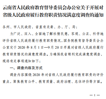 云南省人民政府教育督导委员会办公室关于开展对省级人民政府履行教育职责情况满意度调查的通知
