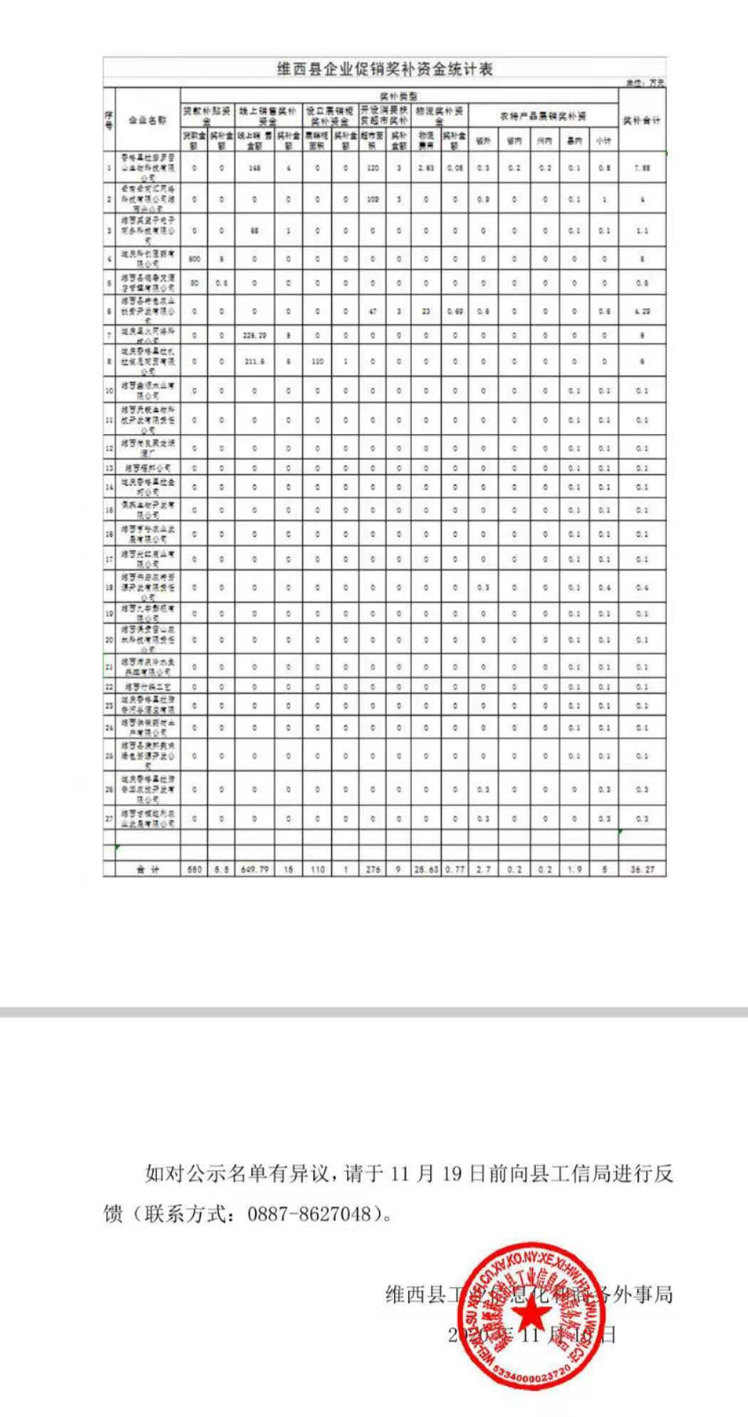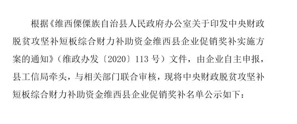关于中央财政脱贫攻坚补短板综合财力补助资金维西县企业促销奖补名单的公示