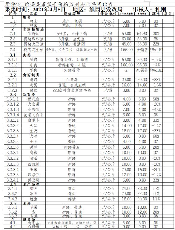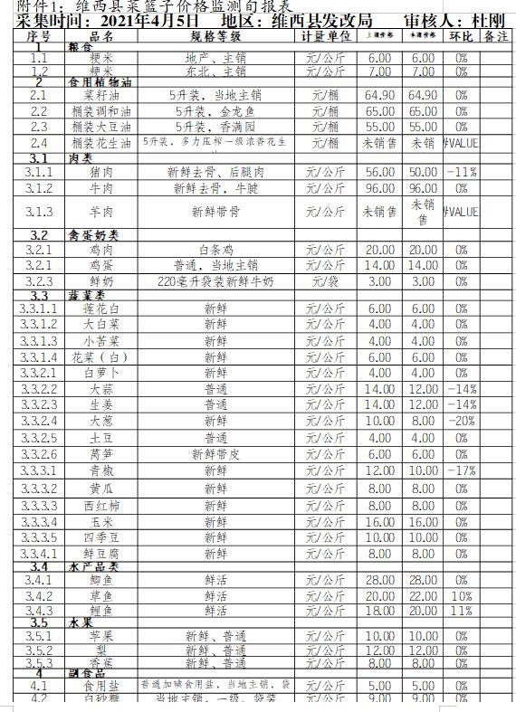 根据《云南省发展和改革委员会关于做好2021年清明期间价格监测的通知》(云发改办价格〔2021〕243号)文件精神,我局密切关注节日期间与群众生活密切相关的重要商品和服务价格,现将维西县清明期间价格监测情况报告如下: