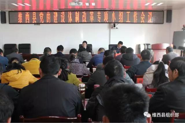 2月18日,维西县召开党的建设体制改革专项小组工作会议。党的建设体制改革专项小组成员、改革任务参与单位负责人,各乡(镇)党委书记、组织委员,县直单位党委负责同志及县委组织部相关业务科室负责人共计74人参加会议,会议由县委常委、组织部长、县委党的建设体制改革专项小组副组长赵雪峰主持。