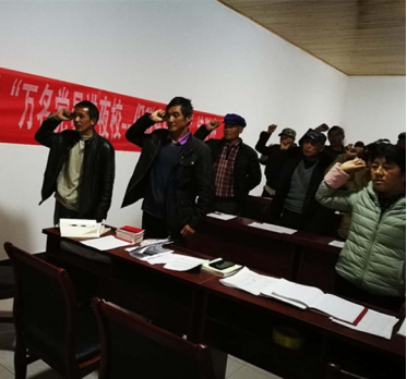 “3 X”主题,把握关键、突出重点。把学习宣传贯彻落实党的十九大精神贯穿“万名党员进党校”培训工作全过程,将“党章、党徽、学习笔记”3项纳入培训工作的“党员充电包”“主材”,明确了“重温入党誓词、学习党章、学习十九大精神”为主的3项培训“主餐”,突出机关事业单位党员、农村党员、“两类”组织党员3个关键培训“主体”,在培训中将送3项“主材”、学3项“主餐”、盯3个“主体”抓紧抓实,在“3”下结合实际拓展内容,比如:在培训“主餐”外,结合上年末组工干部责任区督导对党员培训需求的摸底情况,丰富了基础党务知识、脱贫攻坚知识、农村适用法律法规、“最美家庭”创建知识、种养殖技术等应知应会“附餐”;在“主材”上为党组织书记加了料,因需增加党(总)支工作指导手册等;在“3”个“主体”下,将参加县级党员示范培训班的农村党员列为乡镇“青年党支部”预备人员。在现阶段开展的“万名党员进党校”基础培训班中,开班时班主任为骨干党员、骨干党员为一般党员佩戴党员徽章,重温入党誓词,齐唱入党宣誓歌,为恰逢3月入党的党员过“政治生日”等,通过多对多的“仪式”升华一对多的传统“动员”,增强党员的归属感、荣誉感、责任感。