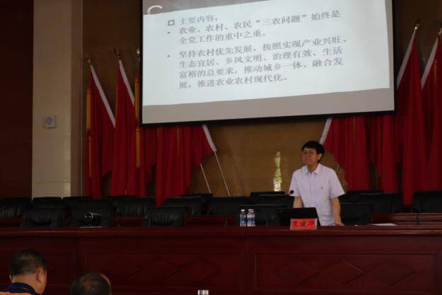 讲座上,研究员、博士生导师范建华教授,从“实施‘乡村振兴战略’的主要内容、为何提出和制定‘乡村振兴战略’、近年来党和国家‘振兴乡村’系列举措、实施‘乡村振兴’战略的伟大意义、国外乡村发展的典型案例及给予我们的启示”等5个方面作了细致生动的讲解,既对党的十九大提出实施乡村振兴战略进行了全方位解读,又结合实际对具体实施乡村振兴战略提出了独到见解和有益建议。讲座内涵丰富,旁征博引,不仅让参会人员开阔了视野,增长了学识,还启发了思路,增强了信心。