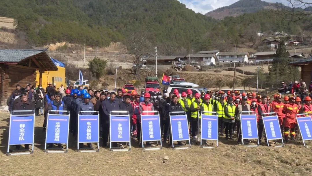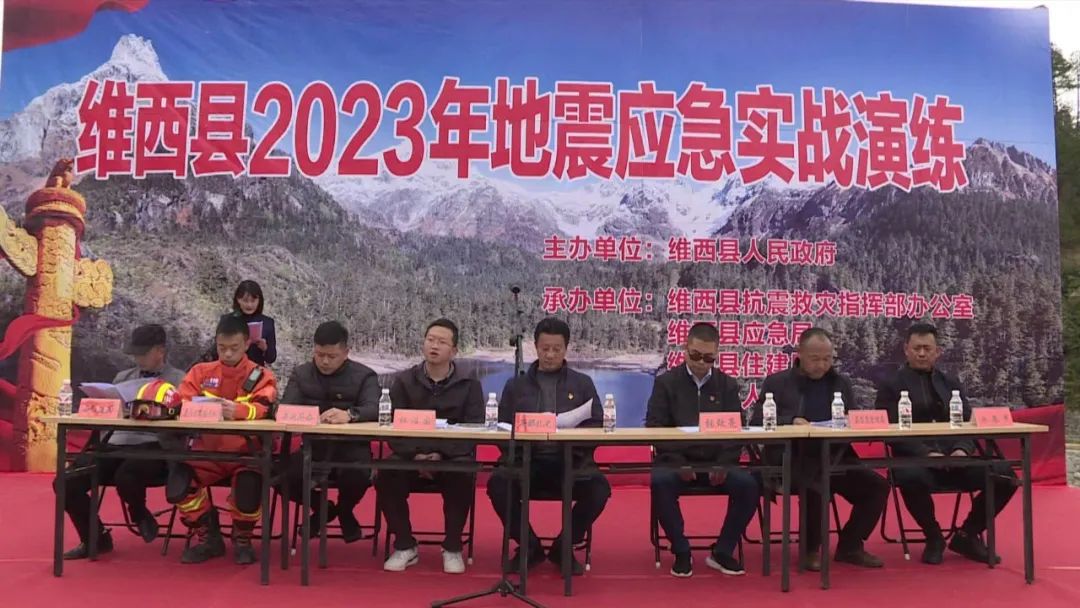 为深入贯彻习近平总书记关于防灾减灾救灾重要论述,及时落实全省全州地震灾害防范应对工作会议精神,2023年2月27日,维西县2023年地震应急实战演练在永春乡庆福村河西组开展。 演练场景预设2月27日12:00,永春乡发生4.9级地震,震中位于庆福村。地震发生后,根据《维西县地震应急预案》,12:30在行政中心召开县抗震救灾指挥部第一次紧急会议,听取永春乡、各成员单位地震应急响应初期情况,根据震情及人员伤亡,决定启动Ⅳ级响应。按照县委书记马盛春,县委副书记、县人民政府县长黄龙新对抗震救灾的部署要求,县委常委、县人民政府常务副县长、县抗震救灾指挥部指挥长斯那扎史带领相关部门人员赶到震中庆福村,成立抗震救灾前线指挥部,组建震情监测组、道路保通组、人员搜救组、水域救援组、转移安置组、医疗救治防疫组、电力保供组、通信保障组、水库大坝监测组、住房安全核查组、治安交通管控组、宣传报道组12个救援工作组,科学、安全、有效开展抗震救灾各项工作。演练以云视频、无人机航排组合的远程图象传输方式逐一在前线指挥部展示,通过各救援工作组团结奋战,圆满完成了人员搜救、伤员转运、水库大坝监测、住房安全排查、受灾群众转移安置等各项抗震救灾任务。