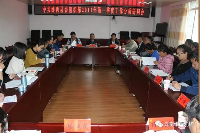 近日,维西县委组织部召开2017年第一季度工作分析研判会,分析会上,部门9个内设机构和10个乡(镇)党委就第一季度工作开展情况、存在问题和下步打算进行汇报,副部长对分管科室工作进行研判并作下步安排部署,县委常委、组织部长参会听取汇报,传达学习全州“两学一做”学习教育常态化制度化精神和全州党建工作重点任务推进会精神,并对开展好党建工作提出具体要求。一是要建立健全党建工作分析研判常态化制度。以此次工作...