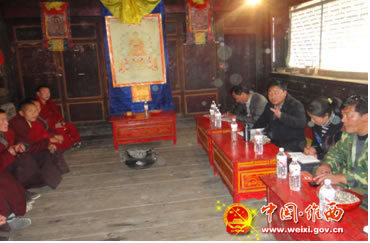 法戒、修行利国民”的宗旨,弘扬爱国爱教的崇高精神,净心修行;在特殊敏感时期,希望各位僧人提高警惕,杜绝一些违法行为,注意搞好僧人内部团结、搞好与村两委、周边群众的团结,在寺院维修期间,注意安全用火用电,为康普乡的社会经济发展、民族团结、宗教有序贡献自己的力量。同时,格桑书记还对寺庙的维稳工作提出了要求,要做到情况明、底数清。