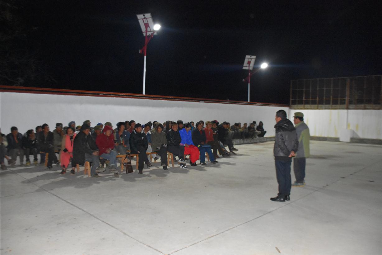 2017年12月6日晚,县人大常委会机关党支部与保和镇腊八底村党总支第三支部“双建双推”暨宣传十九大精神大会在腊八底村党总支第三支部活动广场(那独底组)召开,两支部党员和部分群众共80余人参加会议。第三支部书记余向华主持会议。