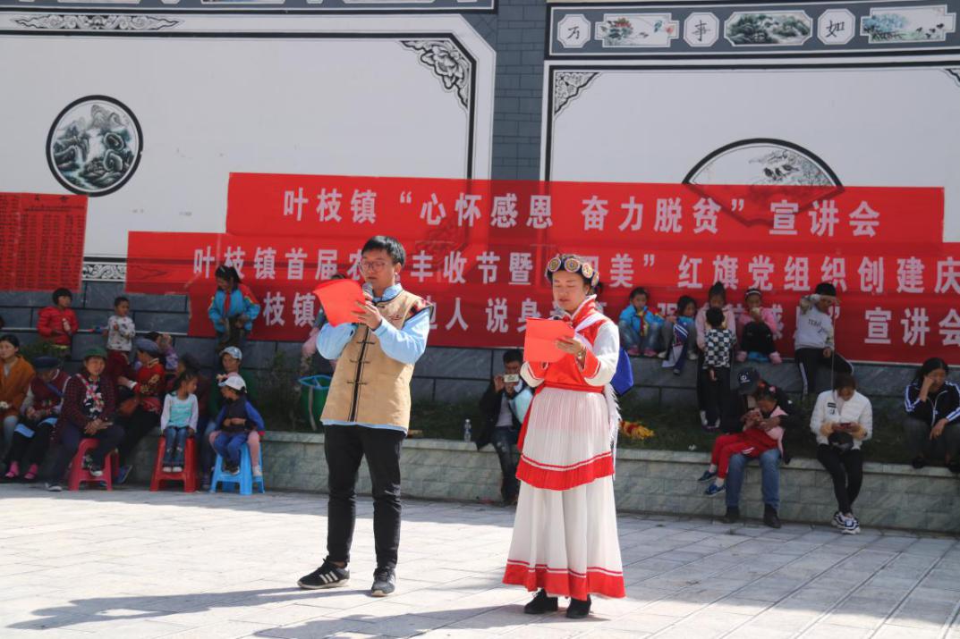 按照州委、县委要求,叶枝镇于10月20日在叶枝镇文化广场召开“心怀感恩 奋力脱贫”宣讲会,标志着叶枝镇“心怀感恩 奋力脱贫”主题宣讲活动正式启动。