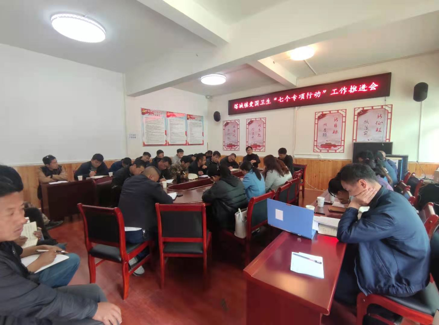 2021年4月是第33个全国爱国卫生月。为认真贯彻落实党中央、国务院决策部署和党的十九届五中全会精神,贯彻落实好省、州、县在爱国卫生督办推进会上讲话精神,及时整改暗访督查过程发现的突出问题,并进一步动员全镇上下再鼓干劲、再添措施、克难攻坚,2021年4月9日下午在塔城镇一楼会议室召开塔城镇爱国卫生“7个专项行动”工作推进会。会后,全镇持续开展卫生大扫除、环境综合整治、清河行动等活动。