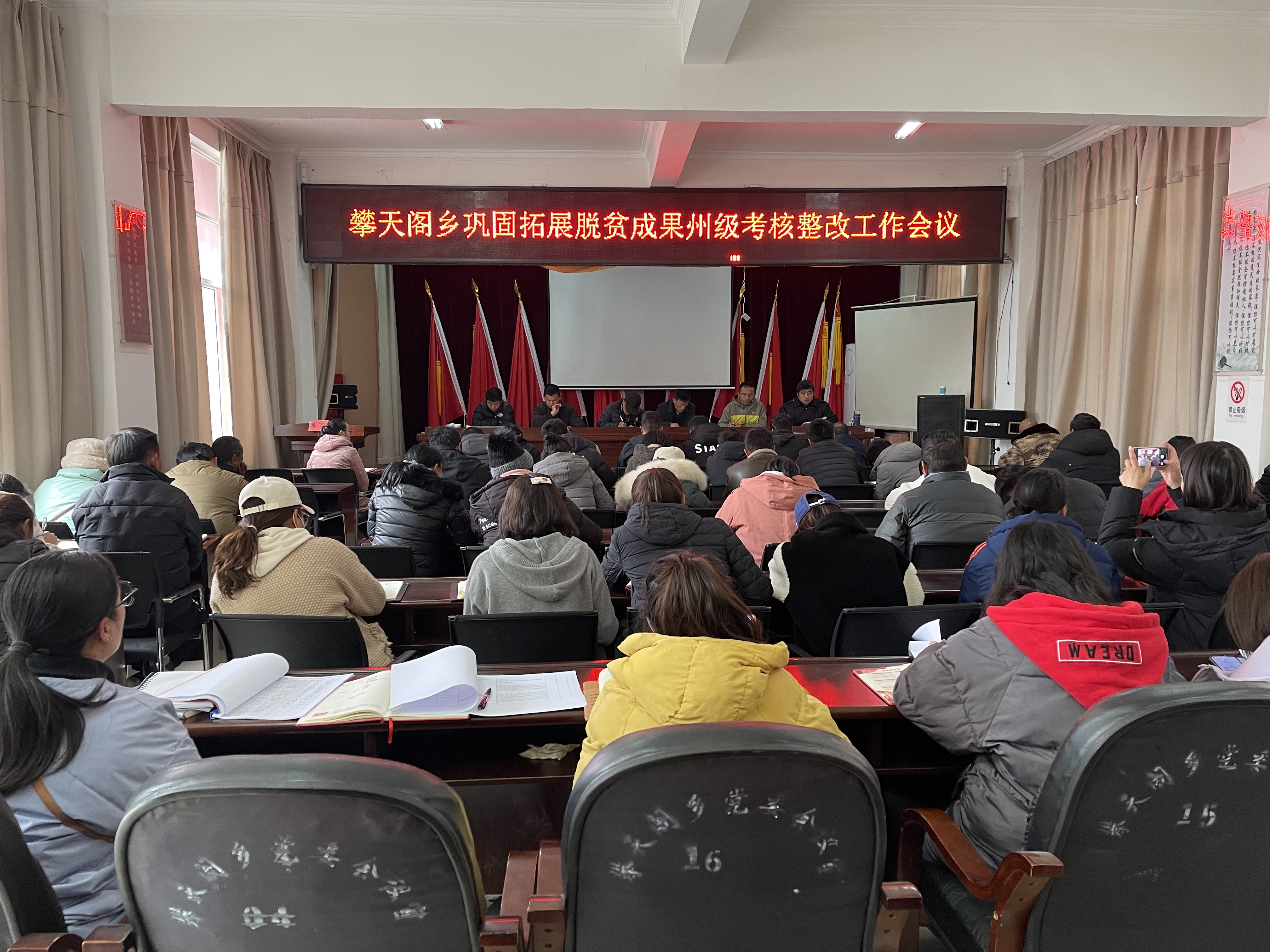 12月23日,攀天阁乡召开巩固拓展脱贫攻坚成果州级考核发现问题整改工作会议,对州级考核发现问题整改、国家级考核评估迎检工作进行再安排再部署。攀天阁乡各村总支书记、村主任、驻村工作队长及全体干部职工参加会议。乡党委书记主持会议。
