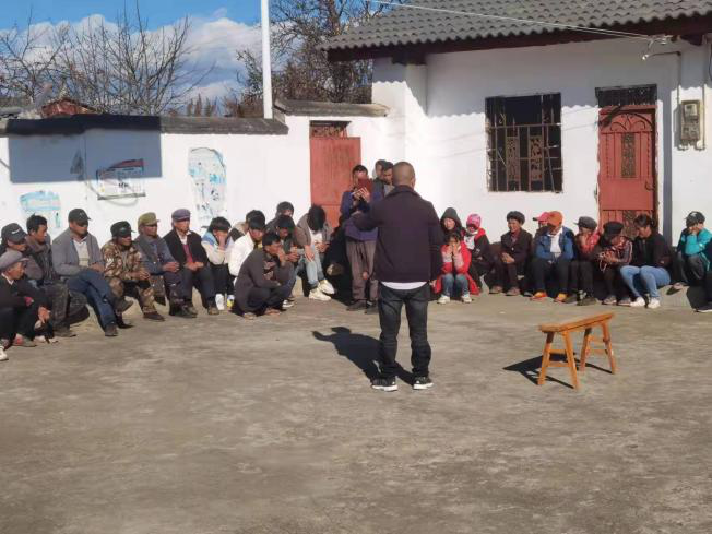 (各村召开村两委会议,传达例会会议精神)