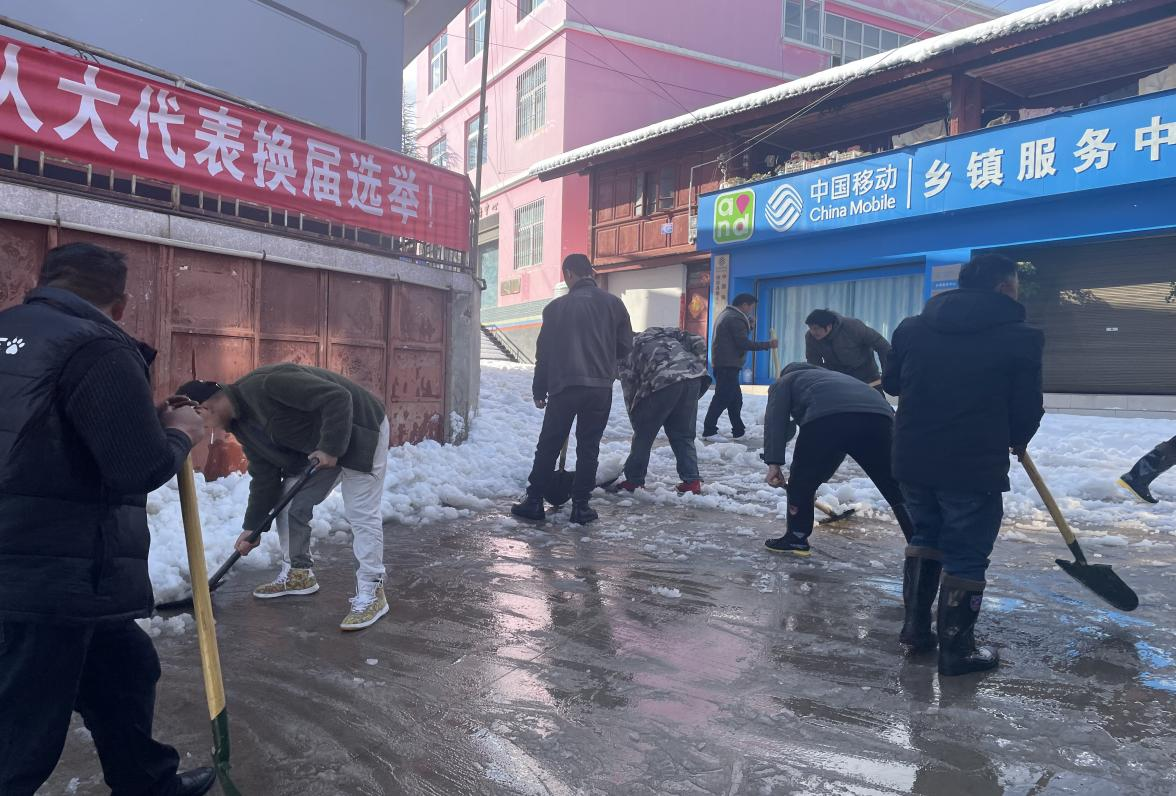 近日,攀天阁乡大范围降雪,皑皑白雪、银装素裹,仿佛穿上节日盛装,景色分外美丽,但漫天的大雪也给群众正常生活与出行带来很大不便,我乡广大干部职工在乡人民政府乡长周兴同志的带领下大范围清扫积雪,主要街道已清扫干净。