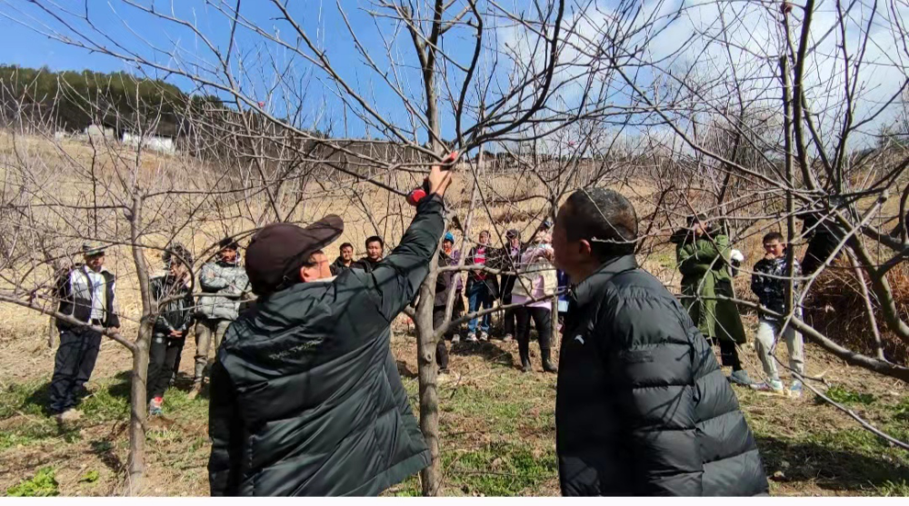 “对于幼龄果树适合在早春时节修剪,树干以下50cm的裙枝进行疏处。对于初结果的果树,要加强培育主干,保持枝干均匀,适当修剪辅养枝、大枝。水肥方面,4-6月份要适时浇水,追加农家有机肥,肥料施加应离根部一米左右不宜囤积根部。要保证果树花前、花期、花后、膨果期的水肥施加。”农技师耐心细致地讲解了种植方法、手把手示范了修枝技巧。