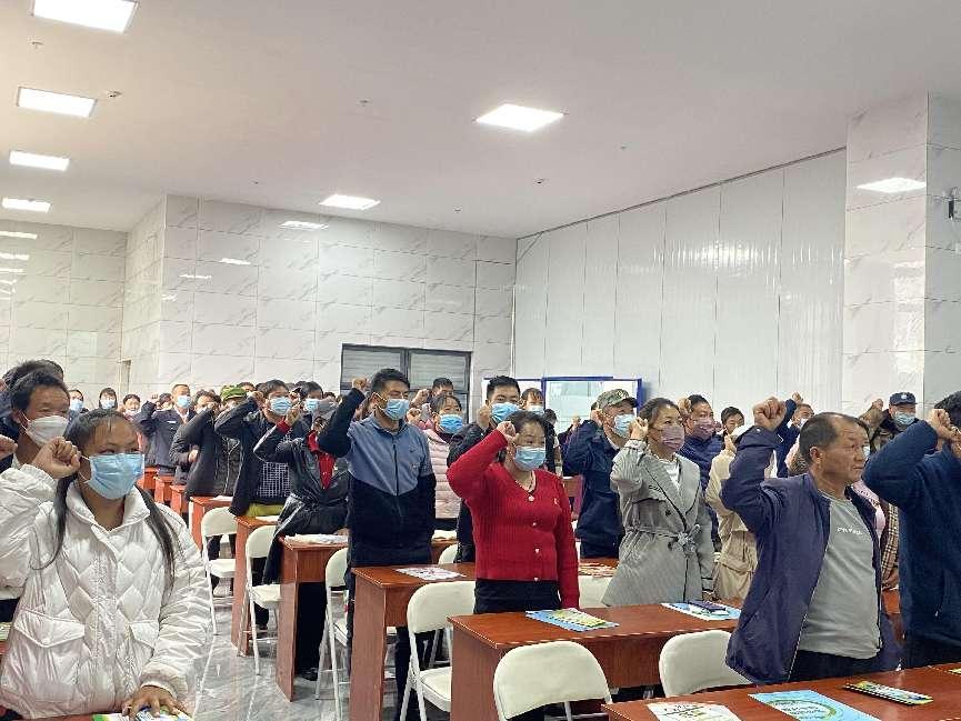 面对鲜红的党旗,党员们举起右手、紧握拳头,在社区党委副书记的带领下庄严宣誓,回荡在会议室的铮铮誓词让每一位党员心潮澎湃,精神振奋。重温入党时的初心和使命,我们必定坚定信仰,牢记入党誓词,践行党的宗旨,永葆忠诚干净担当的政治品格,以实际行动兑现对党的庄严承诺。