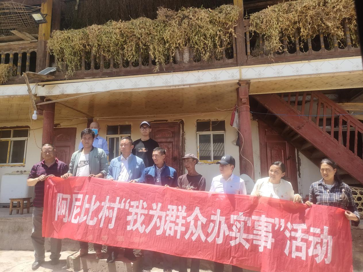 阿尼比村自开展党史学习教育以来,始终密切结合村实际情况,以党史学习教育为抓手,开展“我为群众办实事”实践活动。2022年5月9日,经村两委及驻村工作队商讨决定,结合本次集中走访排查,以联建挂钩单位维西县信用联社的方式,共同开展“我为群众办实事”实践活动。