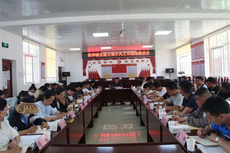 2022年5月27日,保和镇召开党建引领乡风文明现场推进会,镇党委、政府班子成员,各村(社区)总支书记,各站所负责人参加会议。