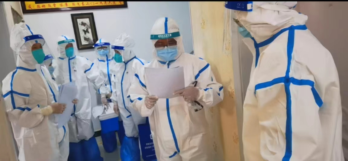 下午3时,康普卫生院的工作人员对穿戴疫情防护设备进行现场教学,全体干部职工现场观摩学习并进行实践演练。