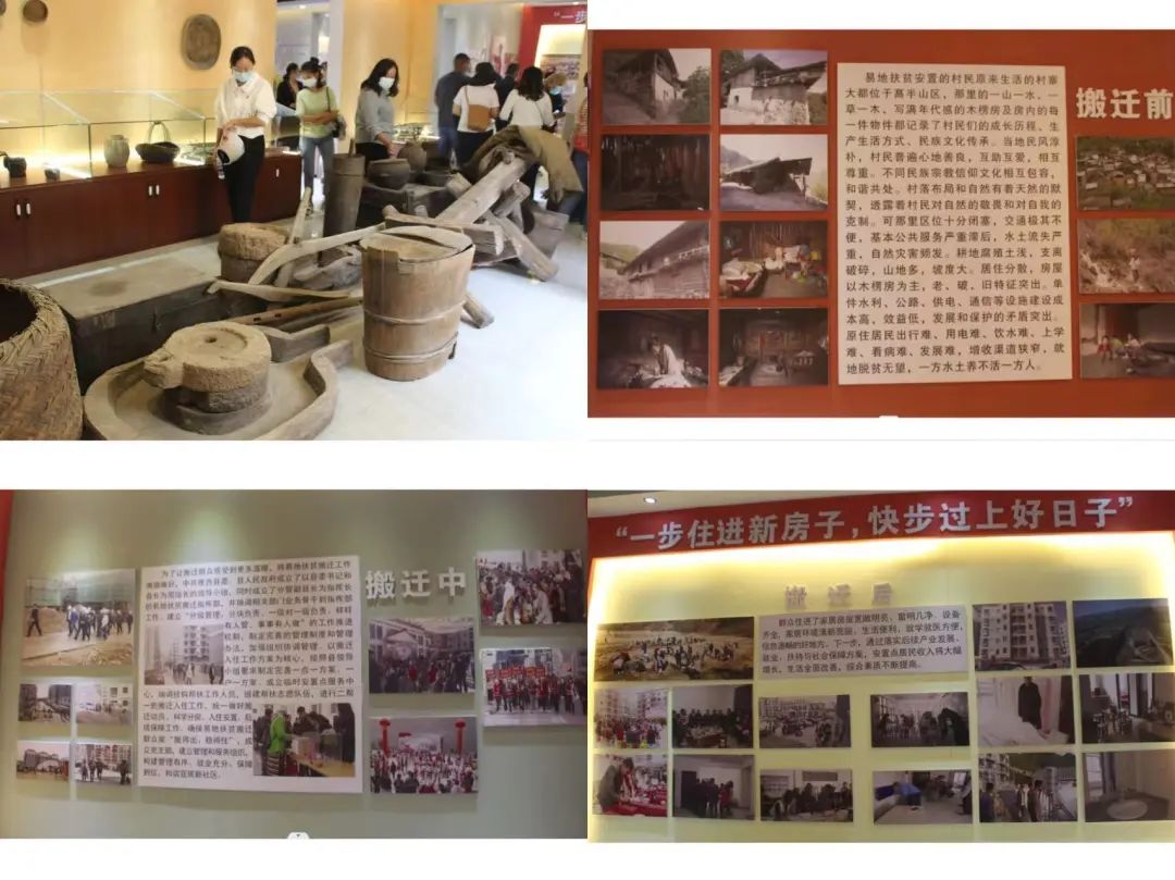 在村史馆,各项图文展板给大家生动展现了通过各级党委政府和社区党委的共同努力,康恩家园建设前、建设中、建设后的变化,让大家真实感受了搬迁群众搬迁后越来越幸福的生活。