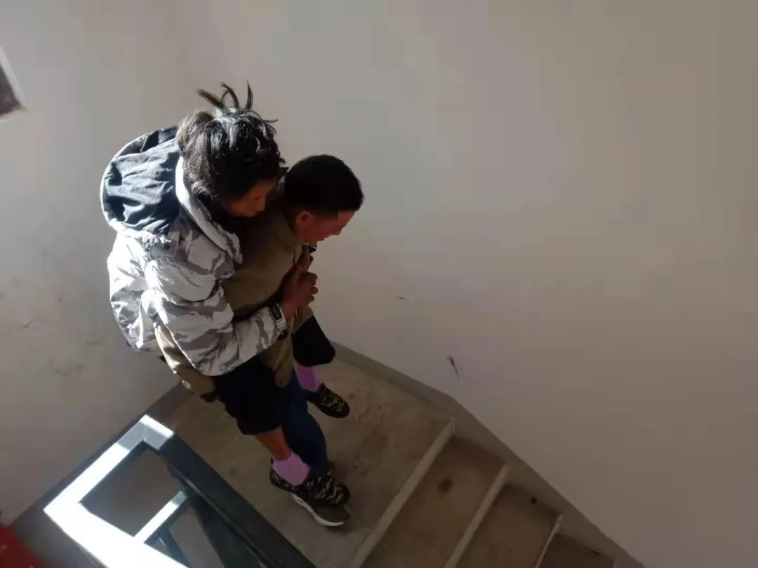 (共产党员李*明背着病人前往医院就医。杨洪程)