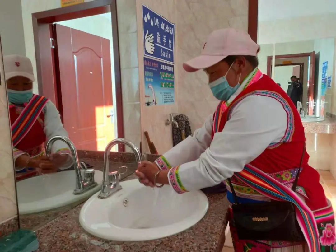 (康恩家园群众爱卫生,讲文明,扫厕所、勤洗手。杨洪程)