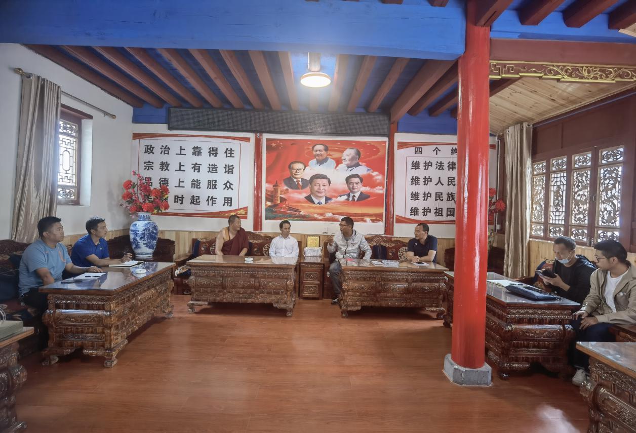 杨学文一行人坚持问题导向,通过与康普寺庙管理局局长李俊、寿国寺民管会副主任斯郎邓珠、康普乡党委副书记李从伟等相关人员座谈交流、听取汇报等方式,深入了解了寿国寺的历史渊源、发展历程、寺院现状和僧人管理、爱国爱教等方面的相关情况以及存在的困难诉求。