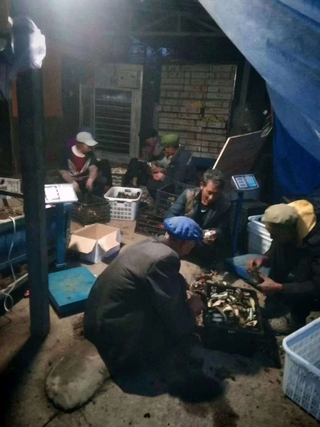 (乡亲们深夜在杨贵新土特产收购点劳动。杨洪程摄)