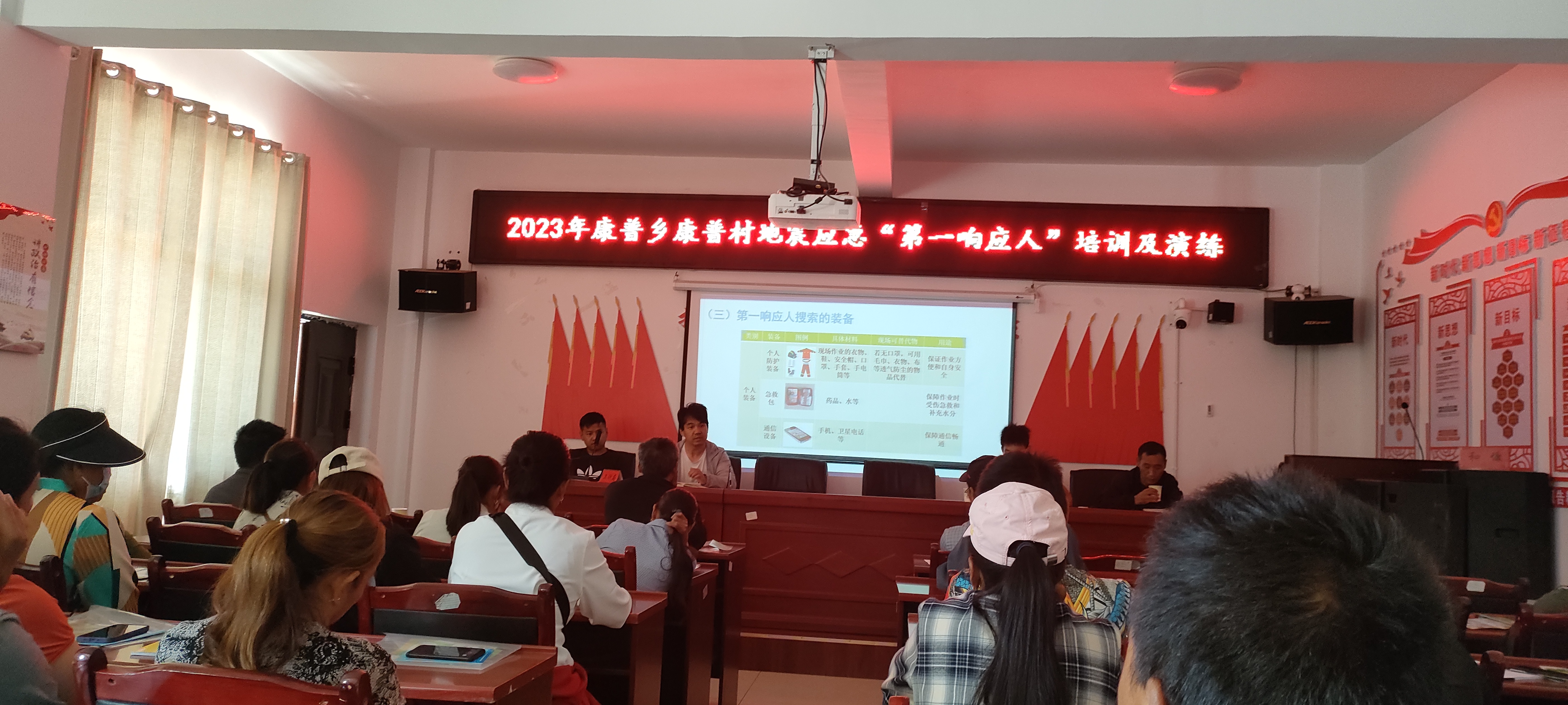 为深入贯彻党的二十大精神和习近平总书记关于防震减灾工作的重要指示批示精神,牢固树立“宁可千日不震、不可一日不防”的思想,康普乡人民政府全面落实各项措施,9月18日至9月20日,组织开展“地震应急救援第一响应人”培训,推动全乡地震应急“第一响应人”培训向行政村和各村民小组延伸,共有85个村民小组279名“第一响应人”参加培训。