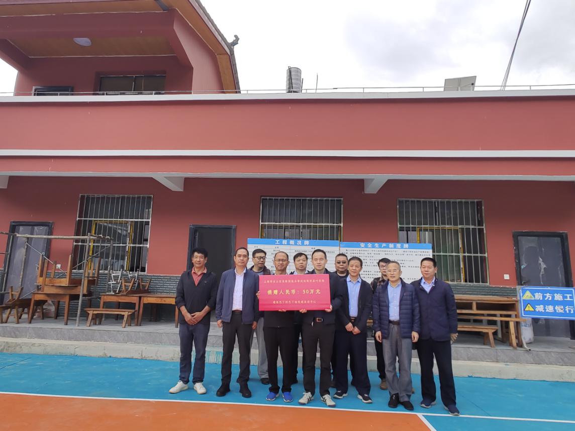 在巴丁村巴丁组党建活动中心建设项目完工现场,吴淞街道代表团一行人进行实地考察,对党建活动中心建设项目的施工进度、资金支出情况、项目实施具体内容和规模进行了详细的了解,并捐赠50万元用于项目建设。