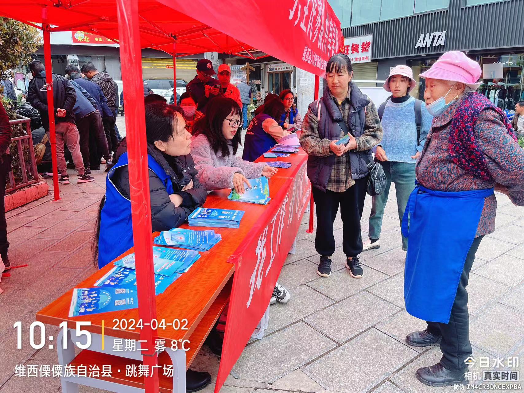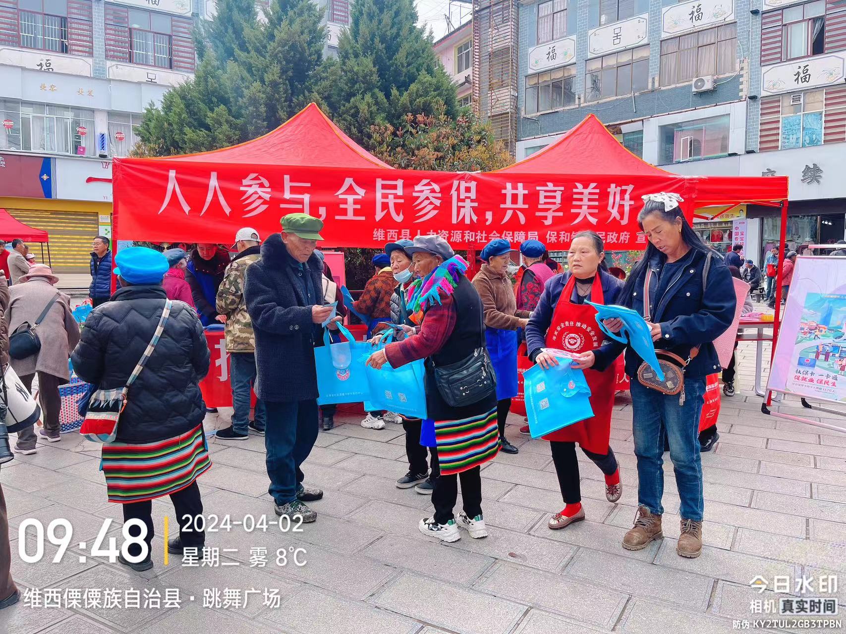 4月2日上午,维西县人力资源社会保障局联合保和镇社会保障服务中心在念萨街跳舞广场开展“城乡居民养老保险”、“企业职工及灵活就业人员养老保险”政策宣传活动。
