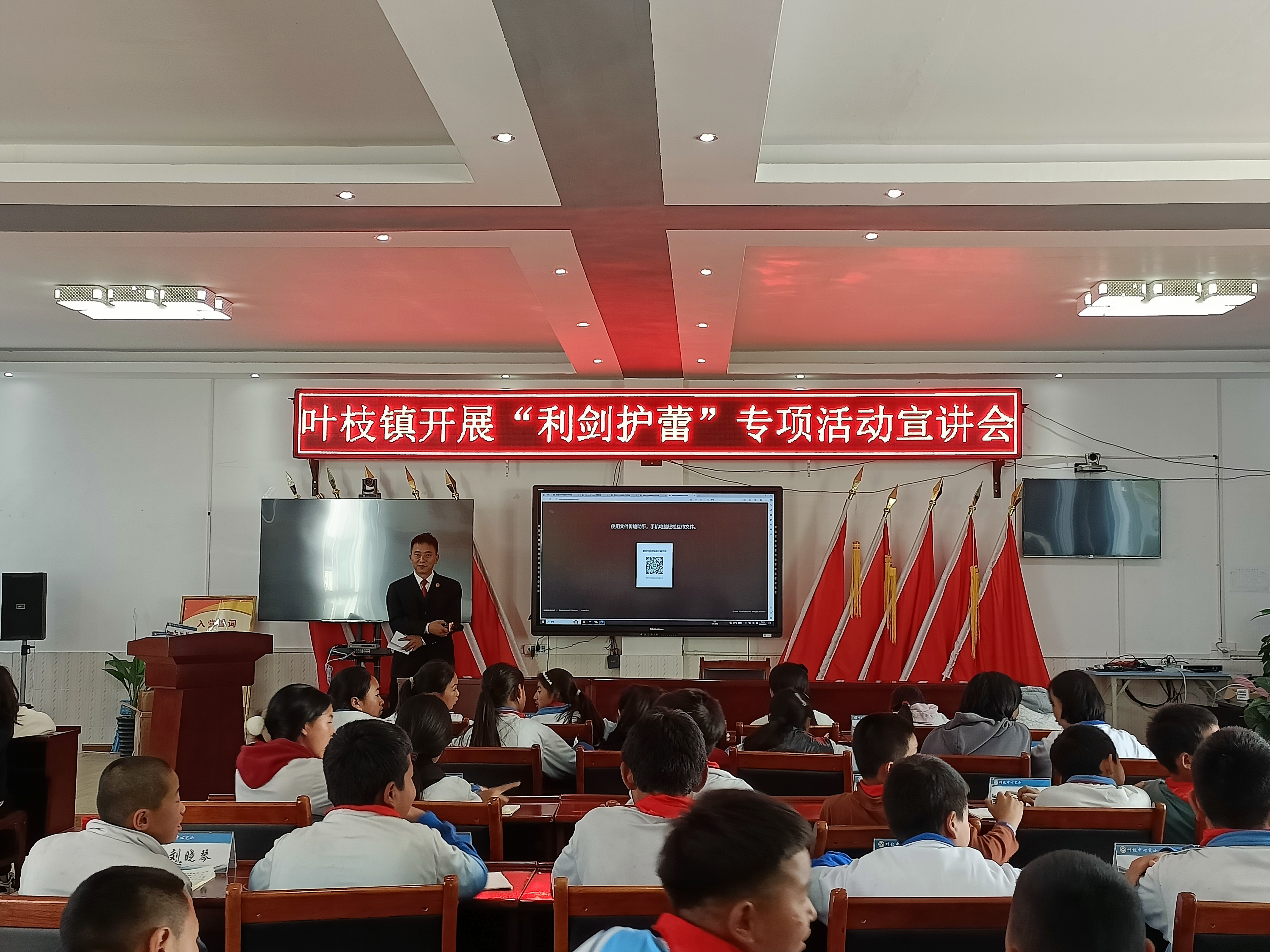 为深入推进“利剑护蕾”专项行动,切实加强我镇未成年人法治教育,提高未成年人法治观念和自我保护意识,在全国第九个“4·15”全民国家安全教育日,叶枝镇综治中心组织派出所、司法所、法庭到辖区中心完小开展“利剑护蕾”普法宣传活动。