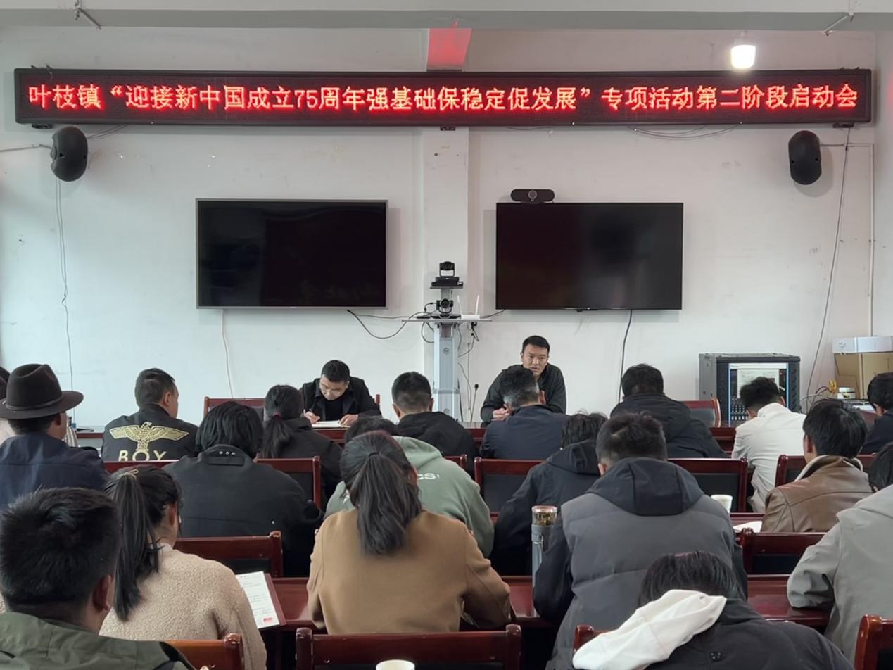 5月7日,叶枝镇召开“迎接新中国成立75周年强基础 保稳定 促发展”专项活动第二阶段启动部署会议,党政班子成员、各站所长、各村党总支书记、主任、驻村工作队长参加了此次会议。