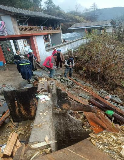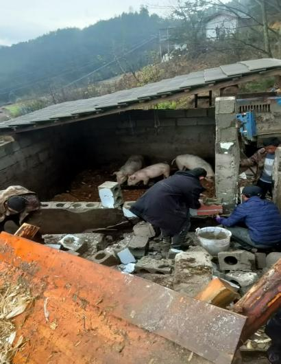 他们“乘风破浪”,给群众温暖守护。低温雨雪天气影响下,永春乡四保村部分农户家园受到泥土坍塌侵袭,院里、家里充满淤泥、杂物。广大党员充分发挥先锋模范作用,冲锋在最前列、战斗在最前沿,勇当防汛救灾“排头兵”,自觉组成抢险救灾先锋队,带动周边群众协助受灾群众清理淤泥垃圾、修缮损毁房屋设施。党员群众敢于挺膺担当、攻坚克难、不怕脏不怕累,将杂物一件件清理,垃圾一点点处理,淤泥一片片清除。用最短的时间帮助群众恢复整洁安全的生活环境。