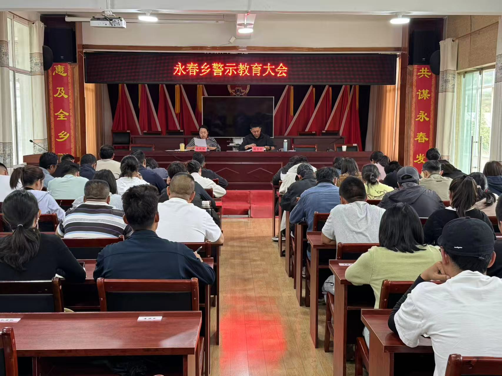 近期,永春乡组织召开全乡干部职工警示教育大会,深化以案说德、以案说纪、以案说责,坚持不懈加强新时代党的作风建设,教育引导全乡干部职工树牢纪律意识,锲而不舍落实中央八项规定及其实施细则精神,推动学习教育不断引向深入。