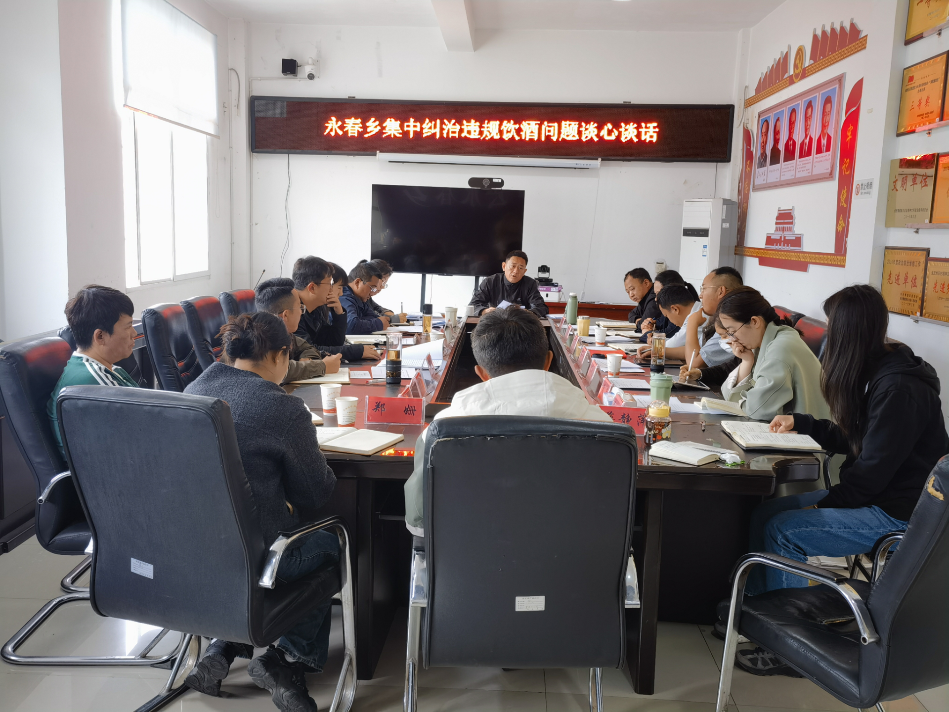 为提高警示教育针对性,集中纠治党员干部和公职人员违规饮酒问题,严守全乡干部职工“八小时内外”行为规范,永春乡党委副书记、乡长通过剖析典型案例、”面对面”开展谈心谈话等方式,提醒全乡党员干部筑牢思想防线,改变“无酒不成席”的陋习,把作风建设新成效转化为干事创业永春新风气,营造更加风清气正的政治生态。