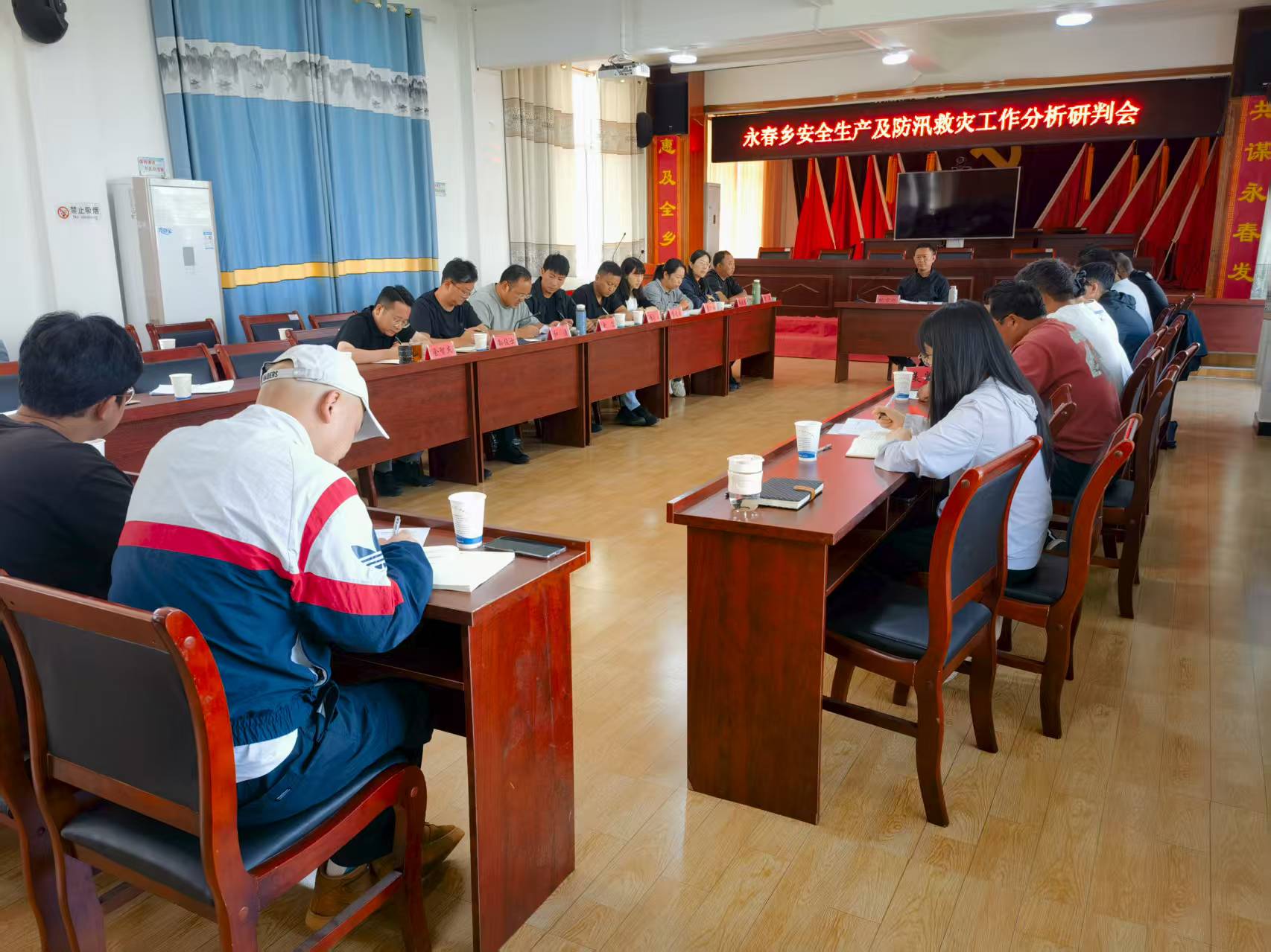 为进一步强化安全生产工作,有效防范和遏制各类安全事故发生,2025年7月14日上午,永春乡组织召开了安全生产及防汛救灾工作分析研判会暨第三季度安全生产工作会议。会议由分管安全生产副乡长主持,乡党政班子成员、乡五办四中心负责人、各村负责人以及永春派出所、永春中心校、永春卫生院负责人参加会议。