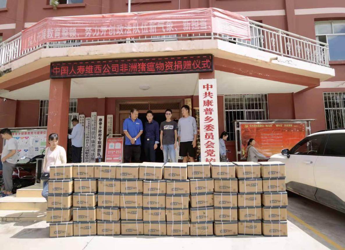 近期,我乡境内局部多点发生疑似非洲猪瘟疫情,疫情防控形势严峻。为有效阻断传播途径,我乡在各个村口路段设置关卡,由群众轮流值守,进行消毒检查工作。一方有难,八方支援。9月14日,中国人寿保险公司总经理杨泽江与员工一行到康普乡人民政府进行物资捐赠,捐赠消毒粉共50箱。