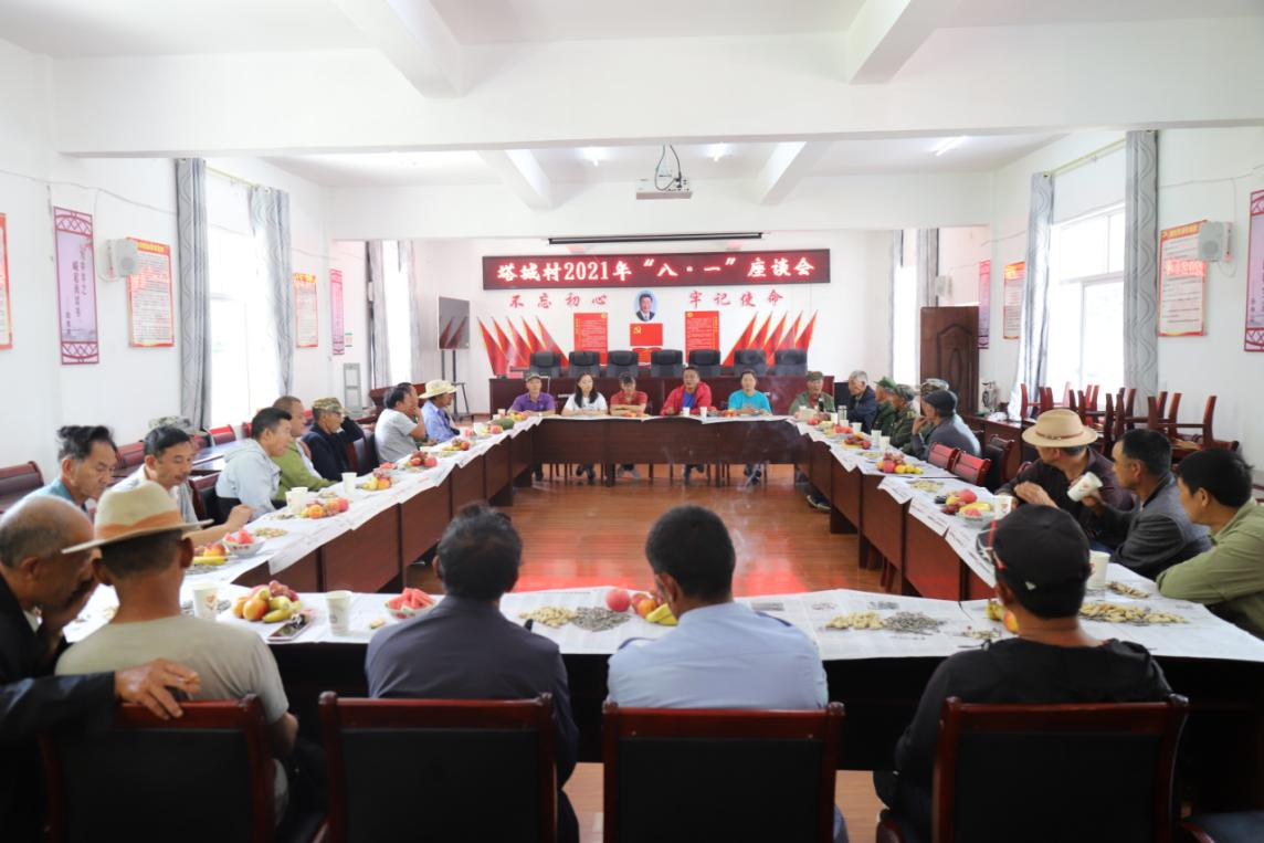 7月31日,为热烈庆祝中国人民解放军建军94周年,做好双拥共建工作,塔城镇塔城村召开2021年“八·一”座谈会,村“两委”成员、驻村工作队及70余名退役军人及家属欢聚一堂,共庆节日光辉,共忆光荣传统,共叙鱼水深情。会上村党总支书记首先向与会退役军人及家属表示节日的问候,感谢他们为国家为人民做出的贡献,以及在退出现役后在家乡建设中的奉献,同时希望广大退役军人继续发扬人民军队的优良传统,讲大局、讲稳定...