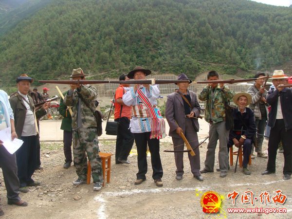 2011年5月1日至2日,为庆祝“五一”国际劳动节和“五四”青年节,进一步丰富少数民族群众的业余文化生活,推动民族传统体育项目的发展,弘扬民族传统文化,我乡在真朴村姑布移民安置点举办了民族民间射弩比赛。图为(获奖前三名代表队)比赛项目分为男子立姿、跪姿,女子立姿、跪姿,老年组,团体等六个项目,全乡六个村委会68名选手参加了个人和团体比赛。经过激烈的角逐,各比赛项目分别产生了冠军、亚军、季军和鼓励奖...