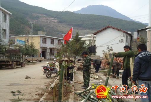 3月10日下午,维登乡维登村党总支深入开展全村党员向杨善洲同志学习教育活动,以“每个党员种植一棵树,管理一棵树,爱护一棵树做起”为主题,组织全村3个党支部11个党小组79人党员、入党积极分子在维登街两旁的绿化带上种下131棵常青树,还为刚发芽的树木修剪枝条,打扫街道环境卫生。同时,党员们还积极向过往群众和街旁商户宣传,提高大家建绿养绿爱绿护绿意识。通过努力,现在维登街道绿树成荫,干净整洁,街道两旁...