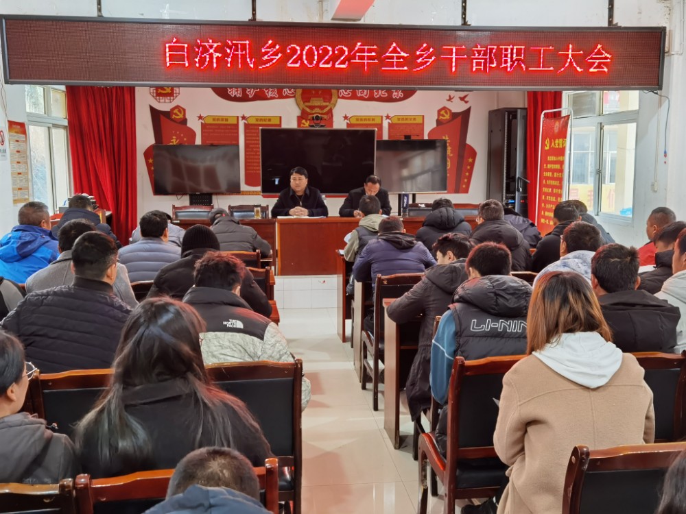 2022年2月7日,白济汛乡组织召开春节后第一次全体干部职工大会,会议由乡党委书记主持,各村总支书记、全乡干部职工共计55人参加会议。会上,乡党委、政府主要负责人分别传达学习了县委十四届四次全会、县第十八届人民代表大会第一次会议、县政协第十三届委员会第一次会议精神,要求全体干部职工要将会议精神学习到位、理解到位,并对近期重点工作进行安排部署。乡政府主要负责人组织干部职工对十七届县人民政府工作报告进...