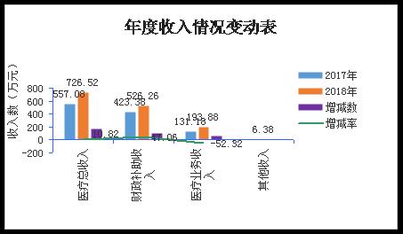 永春乡卫生院部门2018年度收入合计726.52万元。其中:财政拨款收入526.26万元,占总收入的72%;上级补助收入0万元,占总收入的0%;事业收入193.88万元,占总收入的27%;经营收入0万元,占总收入的0%;附属单位缴款收入0万元,占总收入的0%;其他收入6.38万元,占总收入的1%。与上年对比收入合计增加169.44万元。其中:财政拨款收入增加102.38万元;事业收入增加62.7万元;其他收入增加3.86万元。财政拨款收入增加102.38万元是2018年度职工正常晋升、人员岗位变动晋升、工资变动;事业收入增加62.7万元是医疗人次、住院人次的增加;其他收入增加3.86万元是同比药品供应的增加。